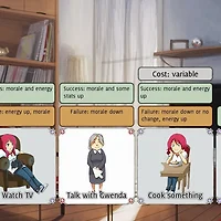 3번 줄에서는 글씨의 색상을 지정하였으며, 5 번 줄에서는 글씨 색상을 설정함과 동시에 캐릭터의 이름이 별도의 창에 표시되도록 창을 두 개 띄우도록 만들었습니다. 7~8 번 줄에서는 pcname 이라는 곳에 저장한 것을 캐릭터 이름으로 사용하도록 설정한 것입니다(후에 플레이어에게 이름 입력을 받아 캐릭터의 이름으로 사용하도록 만들 수 있다는 얘기가 됩니다). 10 번 줄에서는 캐릭터 이름으로 image.png 파일을 사용하도록 설정한 것입니다.